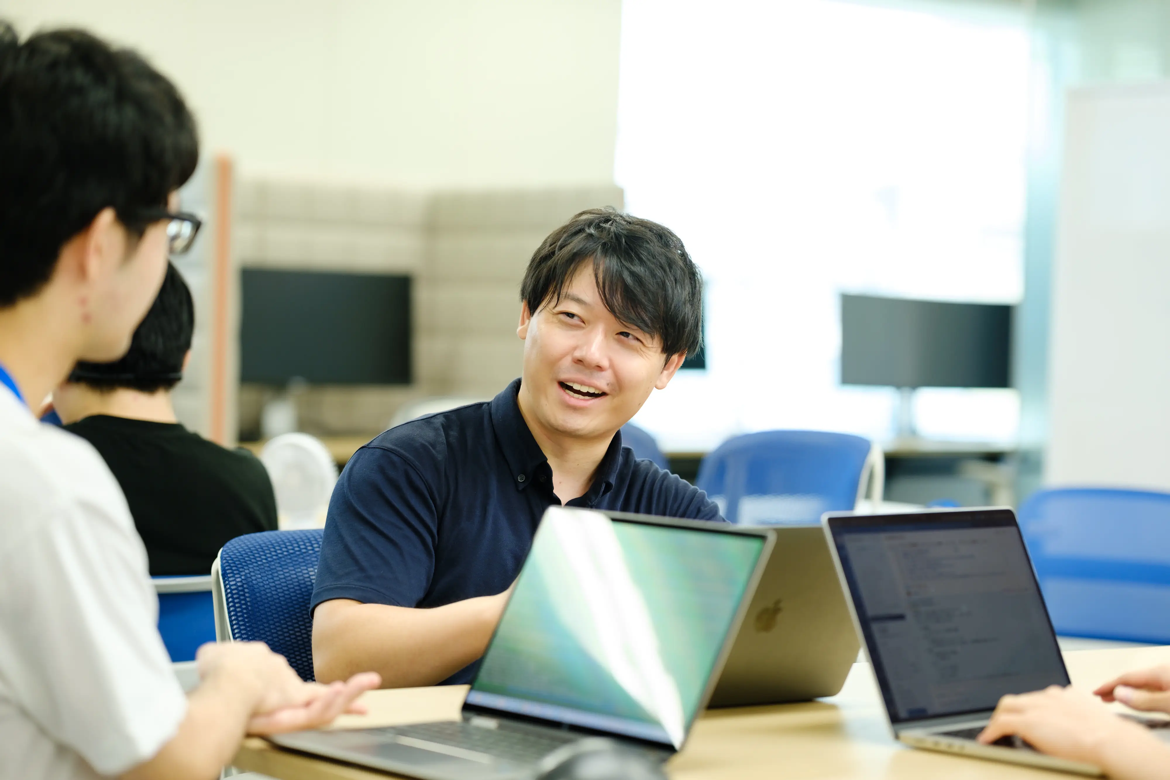 開発経験が浅い学生も多いので、スムーズに業務に入れるよう環境を整え、質問しやすい雰囲気を作ることを常に心がけています。ただ、一方的に教えるのではなく、彼らの自主性や積極性を引き出すことも同じくらい意識しています。